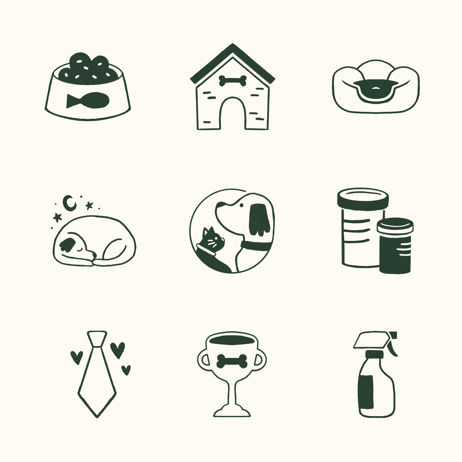 A set of playful illustrative pet care icons created for the Solloway Premiere Pet Care’s website by Hello June Creative. I was tasked with creating the concept and visual identity for each icon.